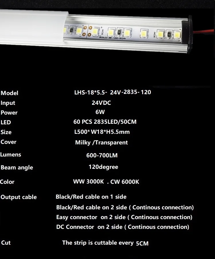 Полоса 2835 60LED/светильник (120led на метр) Мощность 6 Вт Вход 24VDC Люмен 600-700лм CCT WW3000K,CW 6000K