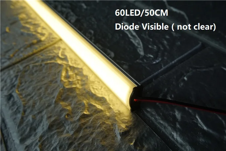 Чем больше светодиодов на метр, тем ярче лампа 60 светодиодов/50 см диод все еще виден, но не ясен 129led/50 см диод незаметен Чем больше диодов, тем больше тепла лампы излучают, для близкого пространства, мы предлагаем 30/60 светодиодов на лампу