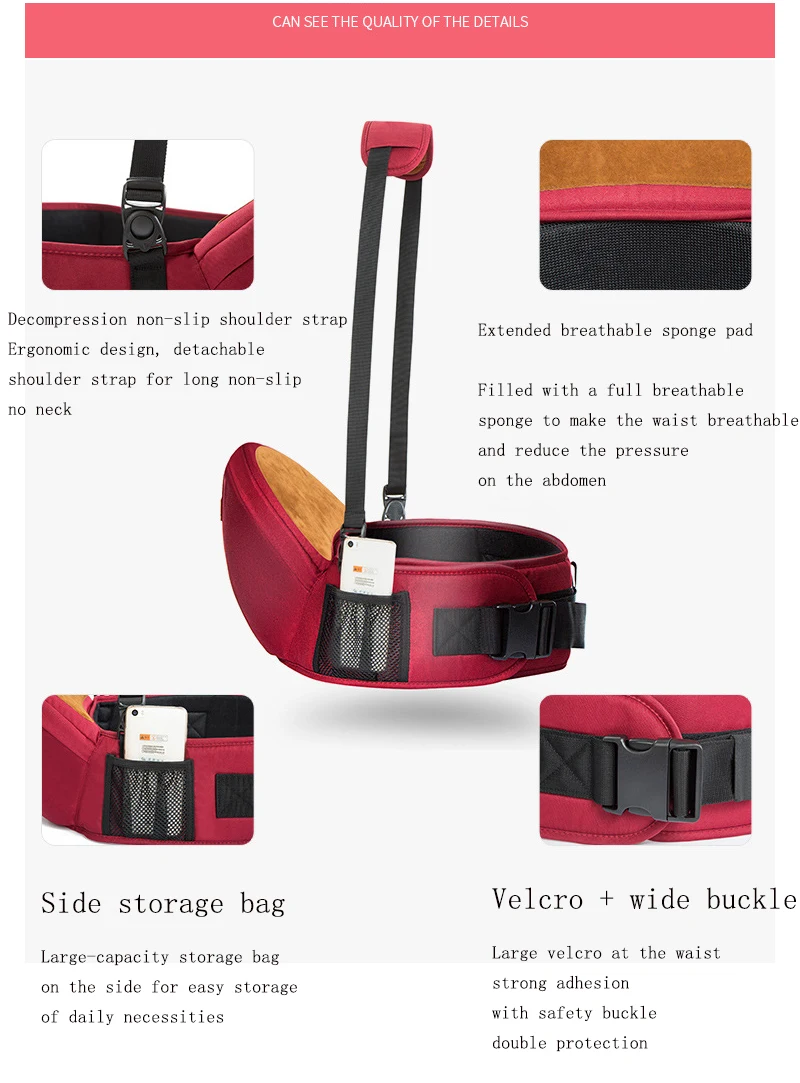 Легко путешествовать Снимает нагрузку на плечи и талию ребенка. 30 ° комфорт угол Наклонный стул для предотвращения скольжения вашего ребенка В то же время, ребенок, естественно, подходит к телу родителей. Сохраните позвоночник Вашего ребенка в естественном комфорте Декомпрессионный нескользящий плечевой ремень Эргономичный дизайн, съемный плечевой ремень для длительного скольжения, без шеи Расширенный дышащая подкладка с губкой Наполненный полной дышащей губкой, чтобы сделать талию дышащей и уменьшить давление на живот Боковая Сумка для хранения Вместительная сумка для хранения сбоку для удобного хранения предметов первой необходимости Липучка + широкий пояс пряжки Большая липучка на талии, сильная адгезия, с безопасной пряжкой, двойная защита EPP скамья ядро EPP амортизационная поддержка стенда ядро, сильное сопротивление давления Деформация легко восстанавливается, используя тип ноги м, когда ребенок уснет Растяните кости ног, чтобы предотвратить уплотнение ног