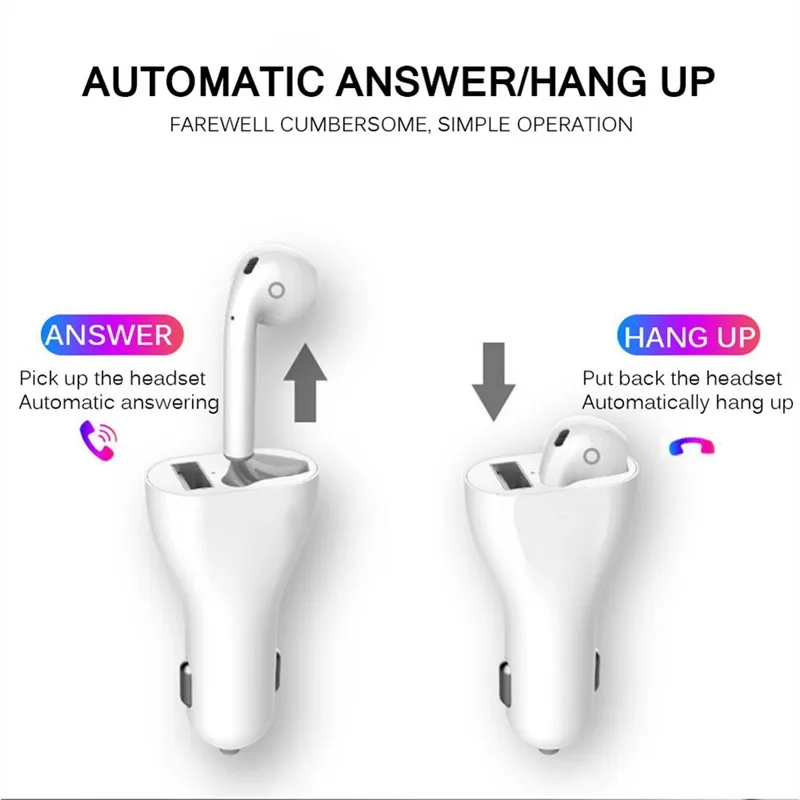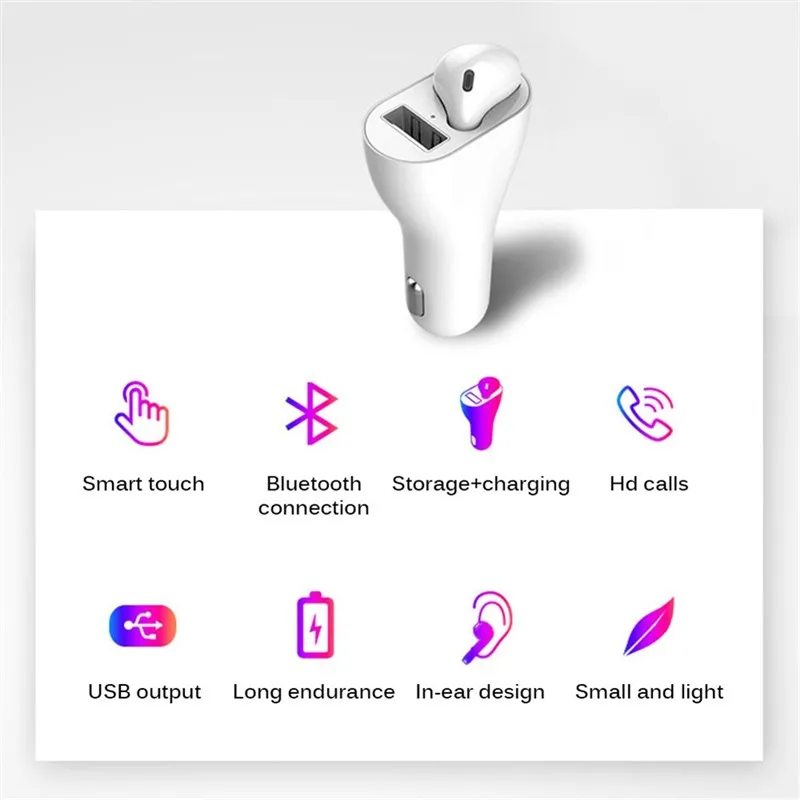 Портативное автомобильное зарядное устройство, одна гарнитура, USB, Беспроводная зарядка, автоматическое подключение, Bluetooth 5,0, гарнитура, прикуриватель