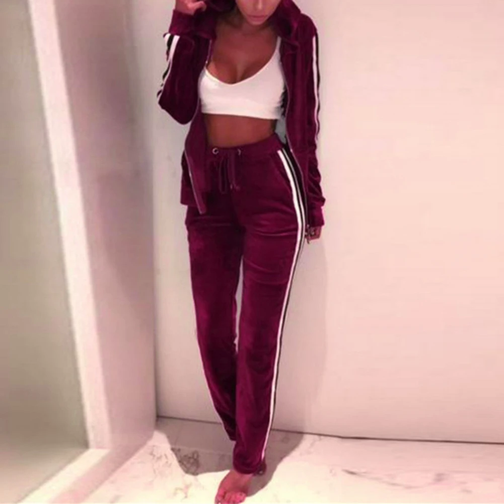 Комплект из двух предметов, женские спортивные костюмы, Осенний женский однотонный свитшот с капюшоном и брюки, спортивный костюм для йоги, женский спортивный костюм