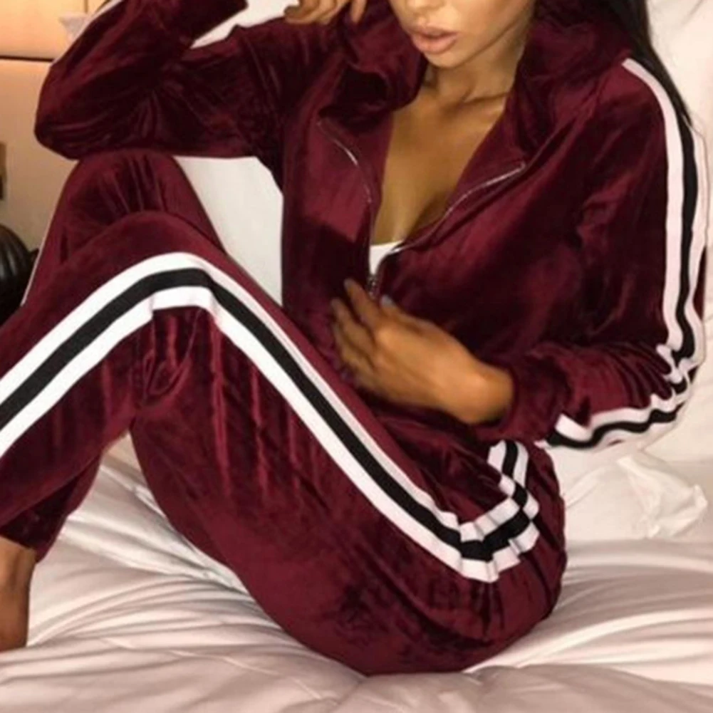 Дизайн в полоску и с капюшоном делает этот спортивный костюм более стильным.