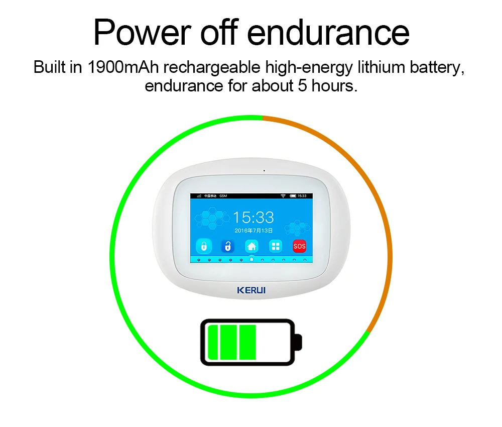 1. Язык: английский (не поддерживает языковой переключатель). 2. 4,3 дюймовый цветной дисплей, человеческое меню, управление с голосовой подсказкой, прост в использовании. 3. Поддержка подключения 2,4G WIFI сети, простое подключение к сети. 4. Поддержка быстрого сообщения напоминания, информация о сигнале может быть отправлена в приложение вовремя. 5. Поддержка системы Android и IOS, один набор мобильного телефона может связать много K5 панели управления в приложении. 6. Двусторонняя связь; Никогда не теряется номер телефона, даже не выключается. 7. Пульт дистанционного управления для руки, снятия, монитора, включения/выключения выключателя сирены. 8. Поддержка функции GPRS, загрузка информации о зарядке на сервер, функция панели дистанционного управления через компьютерное программное обеспечение. 9. Поддержка номера CID, совместимый Международный ID контакт. 10. Максимум 99 зон, каждая зона имеет 8 различных наименований зоны, каждая зона может быть отделена от охраны и снятия. 11. Хост может настроить 8 групп телефонных звонков и SMS, 20 беспроводных сирен можно узнать, 20 умный дом можно настроить, и 8 групп настройки времени, функция охраны/снятия с охраны. 12. Макс 99 пульт дистанционного управления и 99 детектор. 13. Черная коробка, она может отображать последние 99 записей о снятии с оружия и 99 записей о снятии с охраны. 14. Напоминание о низком заряде батареи, функция анти-вскрытия. 15. Встроенный аккумулятор большой емкости, резервное копирование батареи для выключения питания. 16. Выключение питания и напоминание о звонках.