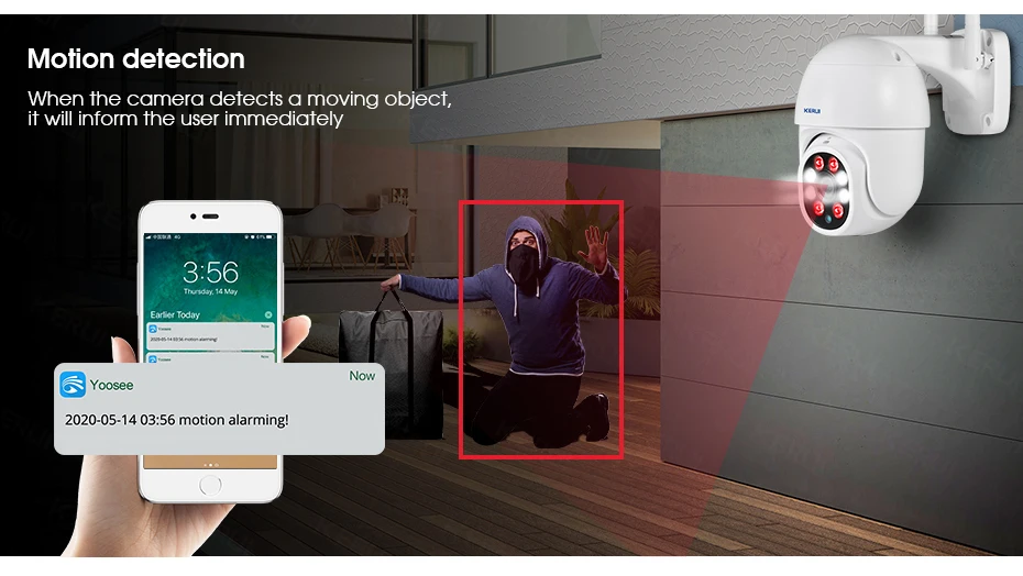 Идеальная Водонепроницаемая наружная камера безопасности KERUI наружная камера является водонепроницаемой (IP65) и позволяет использовать на открытом воздухе. Камера отлично работает как внутри, так и снаружи вашего дома, даже в суровых погодных условиях.