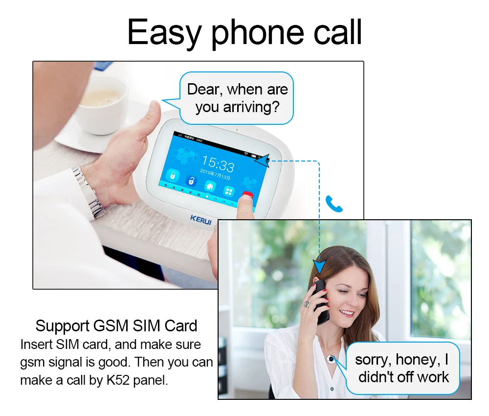 Kerui K52 4,3 дюймов сенсорный экран WIFI GSM сигнализация Охранная домашняя сигнализация умный дом сигнализация
