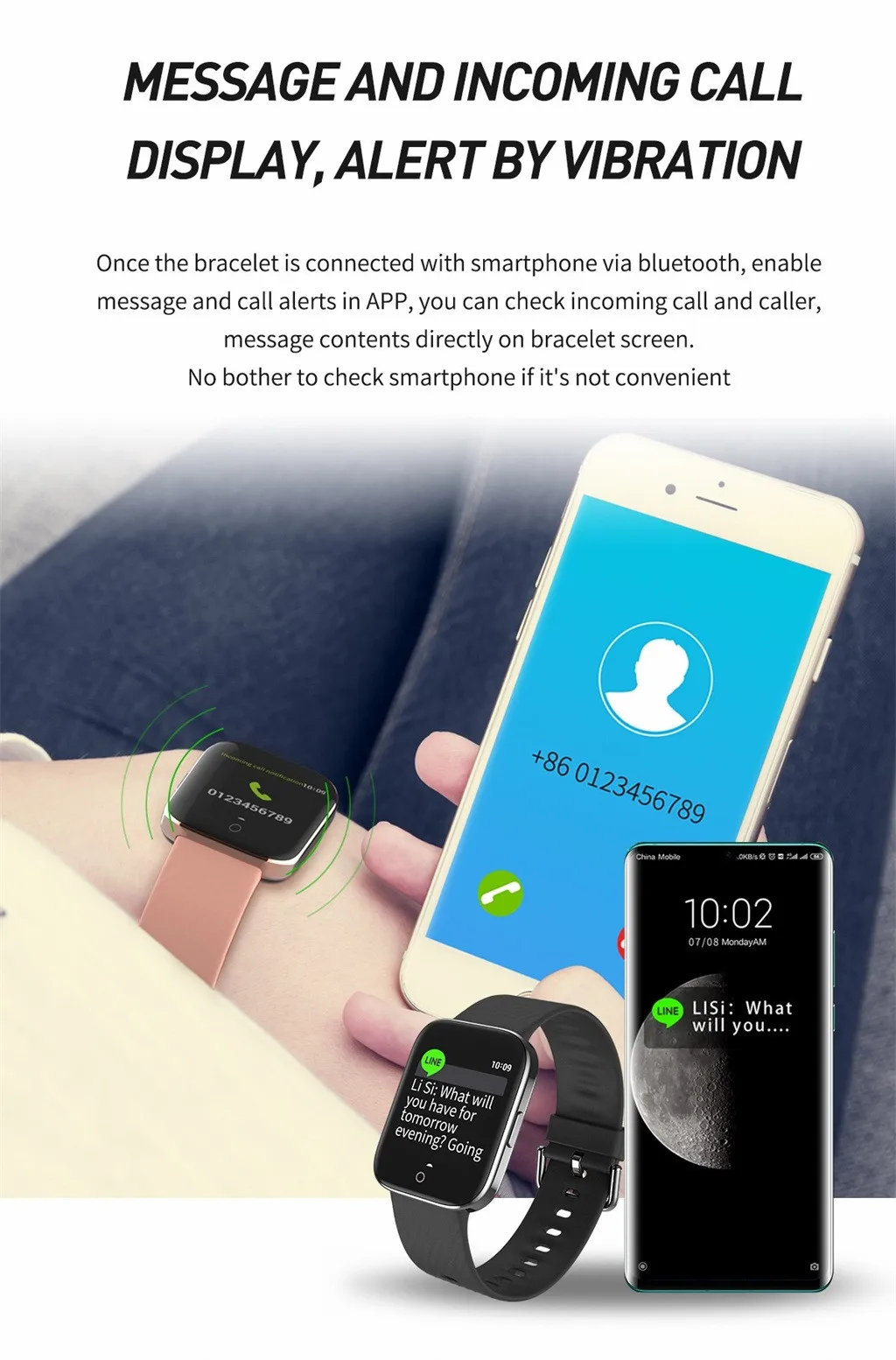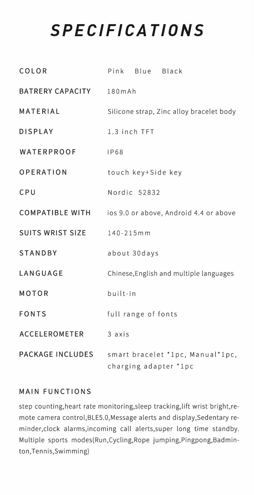 Bluetooth alert function (connect mobile phone synchronization): SMS reminder, call reminder (caller name), WeChat ,Facebook,alert, target encouragement alert.