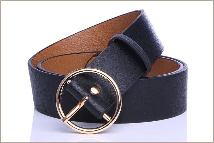 Женский Классический широкий ремень с круглой пряжкой, повседневные кожаные ремни для джинсов, 2019