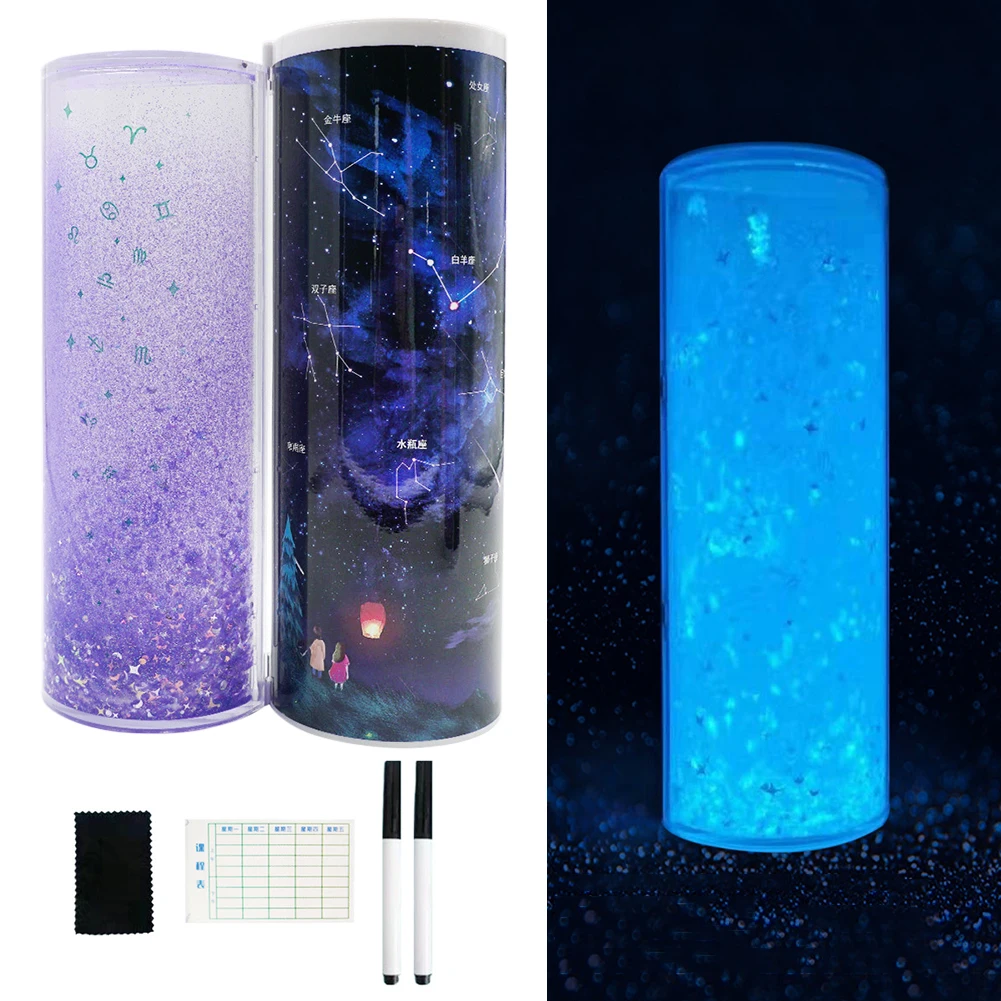 -Канцелярская коробка имеет встроенное зеркало и солнечный калькулятор.