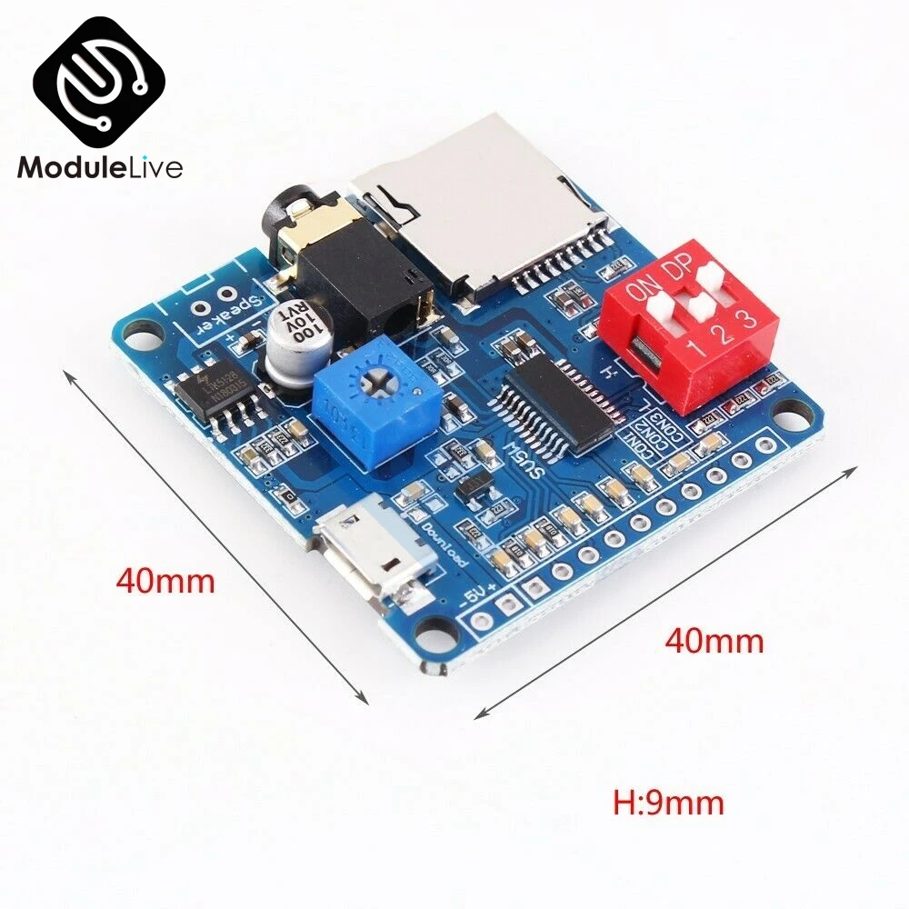 Поддержка частоты дискретизации (кГц): 8/11. 025/12/16/22,05/24/32/44,1/48. 24-битный ЦАП выход, динамическим диапазоном, поддержка 90dB, интерфейс TF карт: 85dB. Поддержка FAT16/FAT32, с максимальной поддержкой 32 Гбит (4 Мбит) tf-карты и 32 Гбит (4 Мбит) u-диска. Поддержка UART последовательного порта управления функцией голосовой трансляции. Он может управлять воспроизведением, паузой, выбором, поворотом громкости вверх и вниз и другими функциями, самый большой выбор 65535 песен.