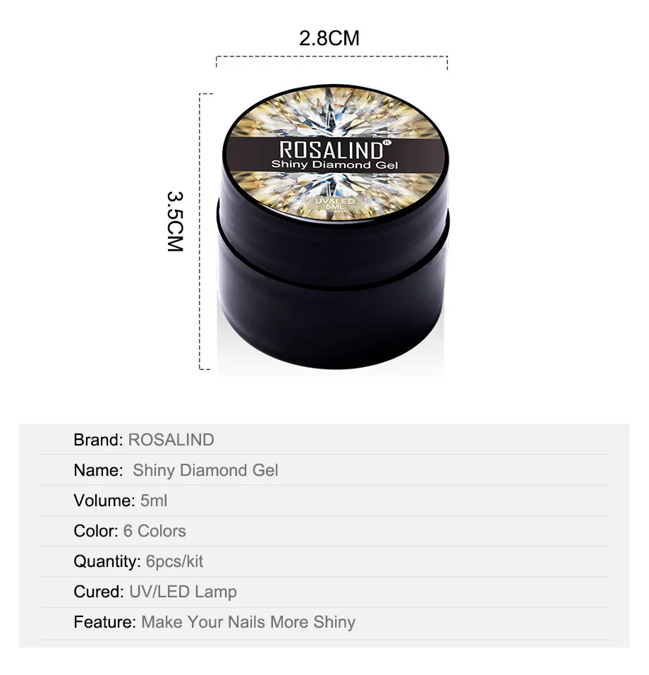 ROSALIND 5 мл Блестящий Алмазный гель набор яркий для дизайна ногтей LED/УФ лампа