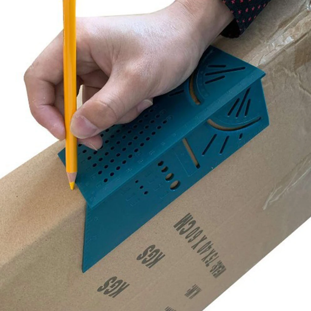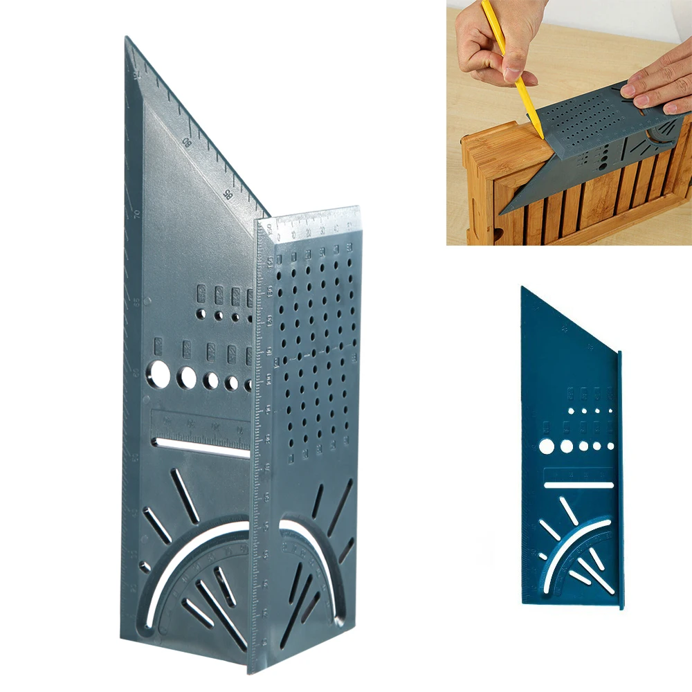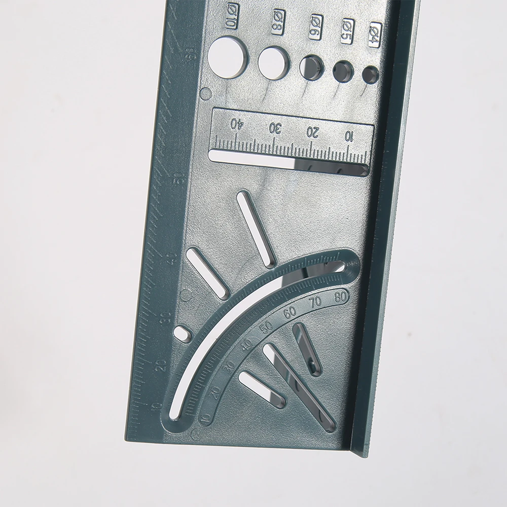 Материал: АБС-пластик Цвет: темно-зеленый, серый Вес при ходьбе: 63,9 г Многофункциональная квадратная линейка 45 градусов 90 градусов, для измерения 3D объекта: дерево, трубы и т. д.
