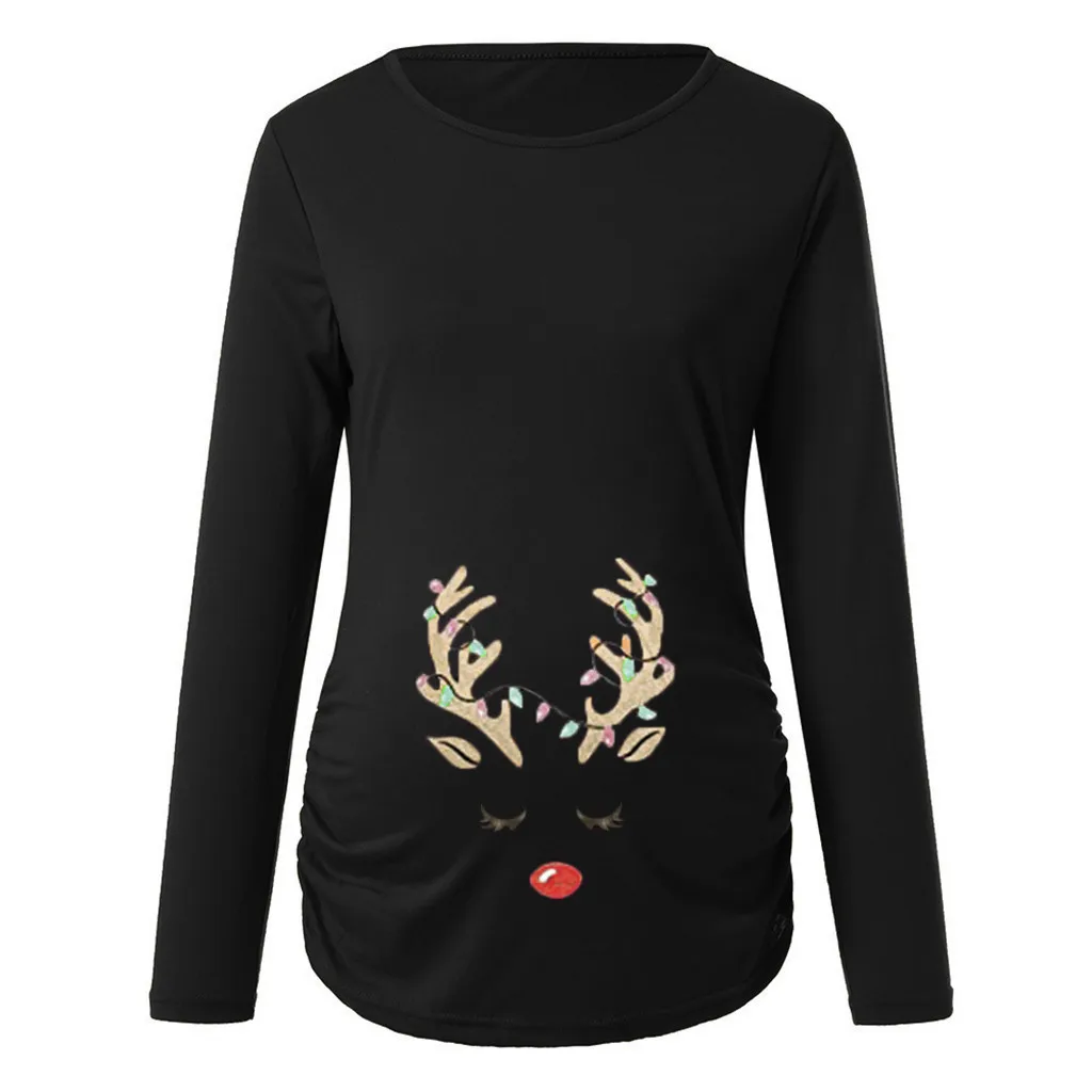 Женская рубашка для беременных на весну и осень, Рождественский топ с длинными рукавами и рюшами, Одежда для беременных