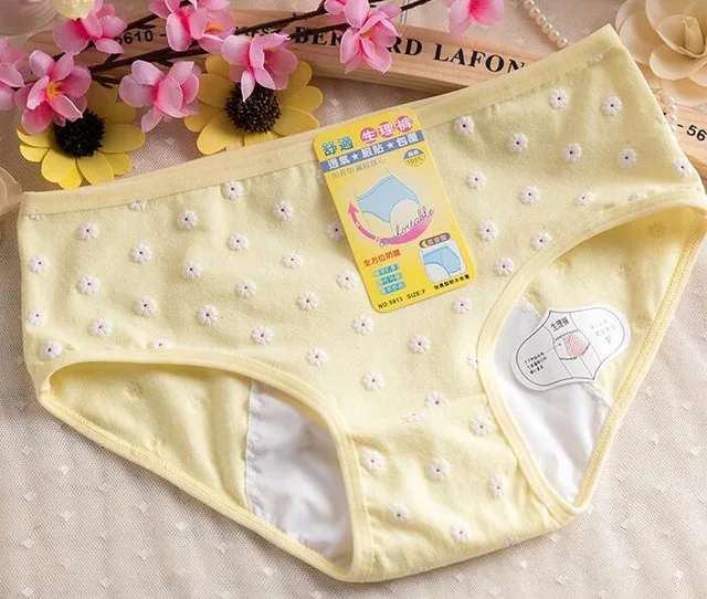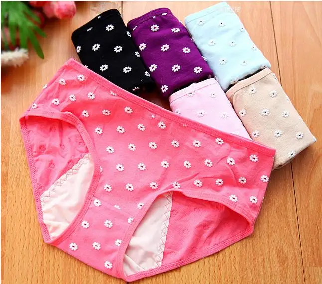 Женские трусики для месячных, физиологические трусики, цветочное белье, герметичное, Расширенное нижнее белье, студенческие непромокаемые трусики