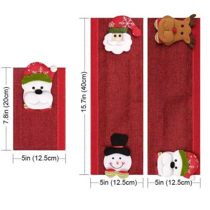 На ручках изображены Санта, снеговик, Лось и медведь на праздничном красном фоне.