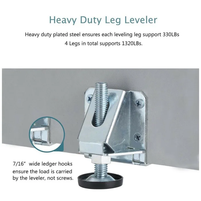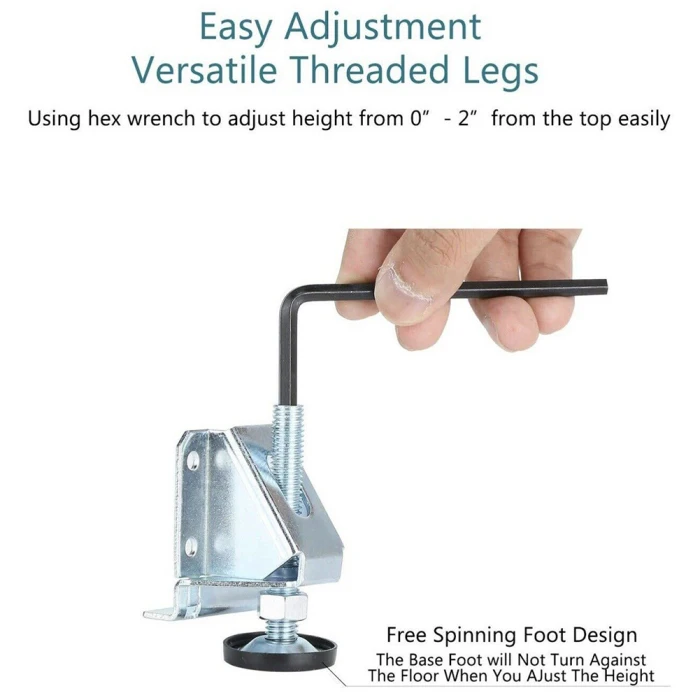 Регулируемый: Регулируемые ножки позволяют регулировать высоту от 0 "до 2". Обеспечение грузоподъемностью около 600 фунтов с использованием всех четырех нивелиров