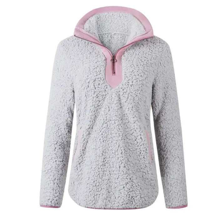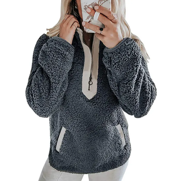 Clothes Type: Women Plush Zipper Sweatshirt Long Sleeve Loose Pullover Outwear with Pockets