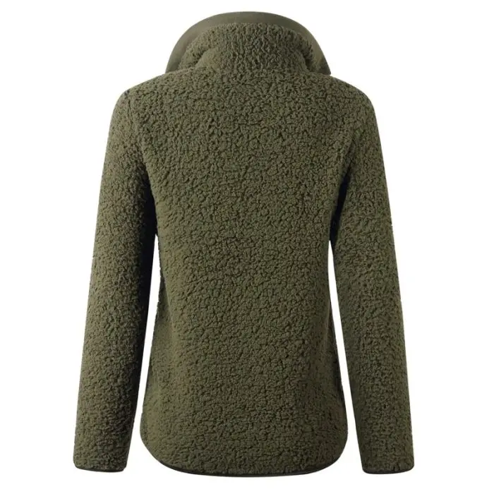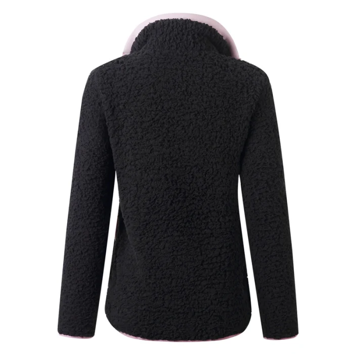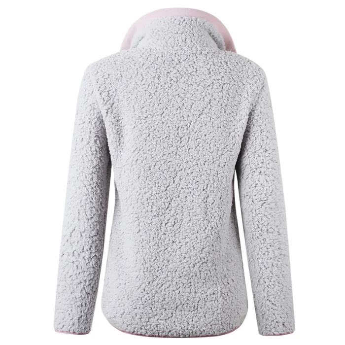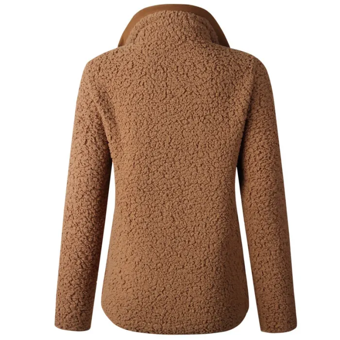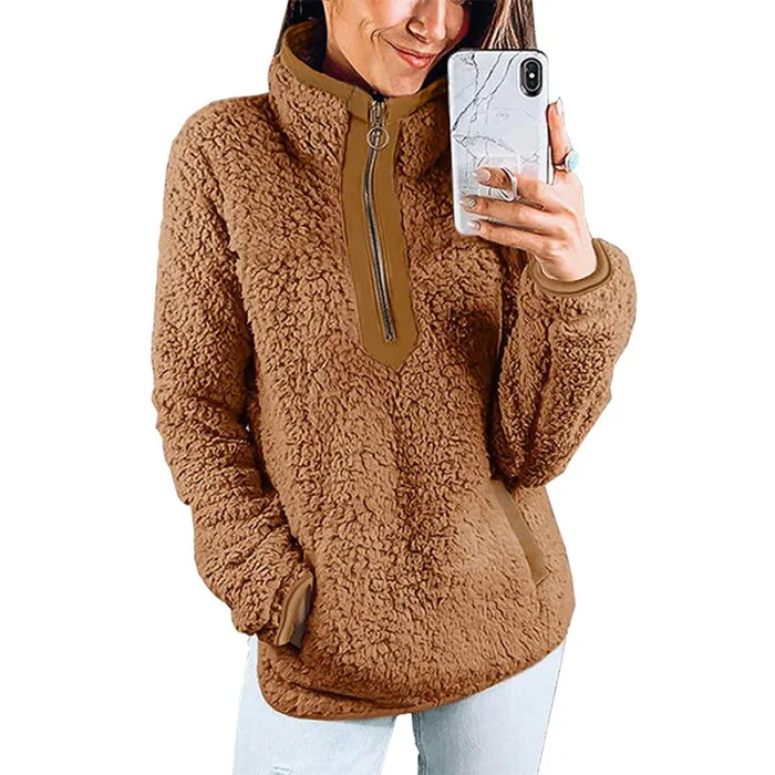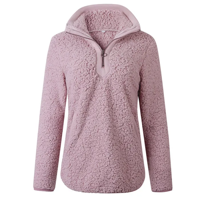 Women Plush Zipper Sweatshirt Long Sleeve Loose Pullover Outwear with Pockets JS26