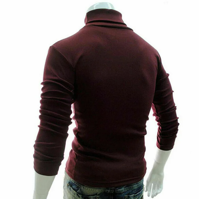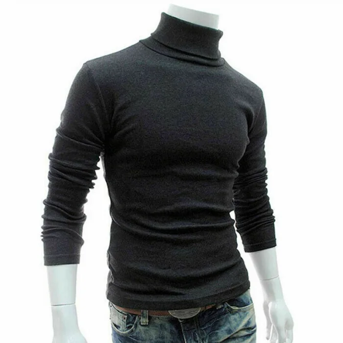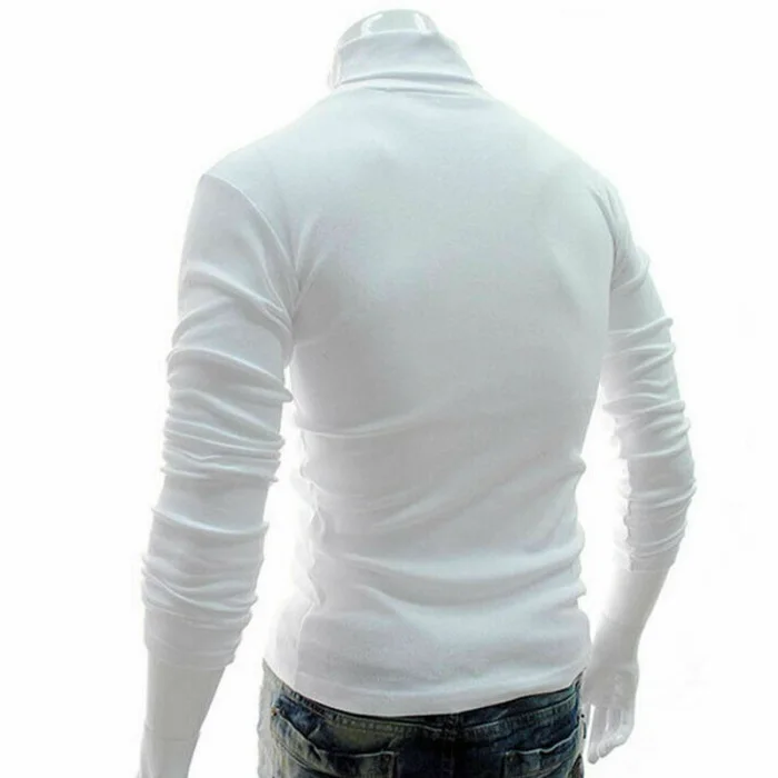 Мужской пуловер с длинными рукавами, водолазка с высоким воротом, стрейчевая тонкая Базовая футболка, трикотажный топ FDC99