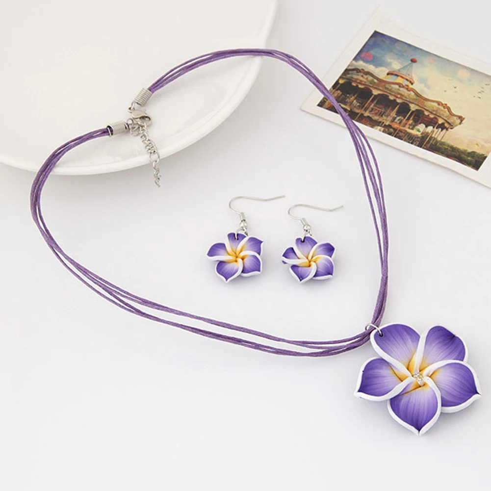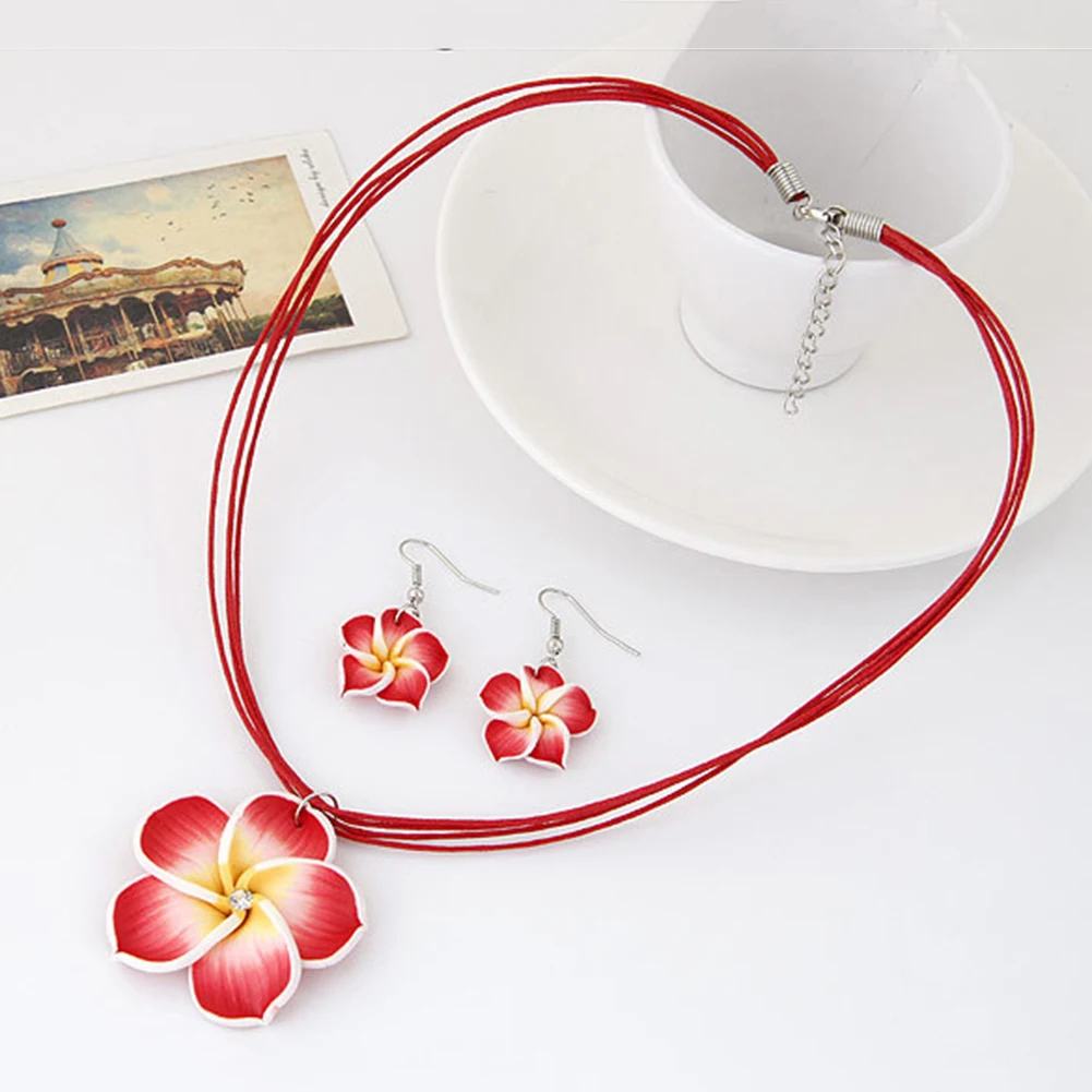 Женские серьги на крючках с гавайским цветком, многослойное ожерелье из восковой веревки, комплект ювелирных изделий