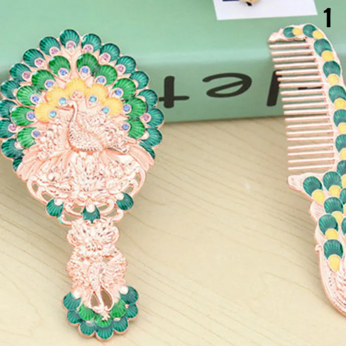 Винтажное зеркало и Расчёска в комплекте, косметичка, настольный набор, мини ручное зеркало, Ретро стиль, павлин, узор, V9-Drop