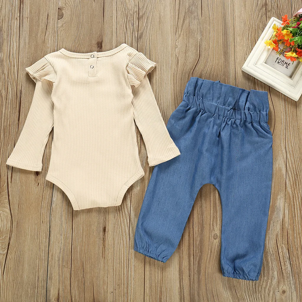 Одежда для новорожденных девочек, комбинезон + джинсовые штаны, комплект с джинсами
