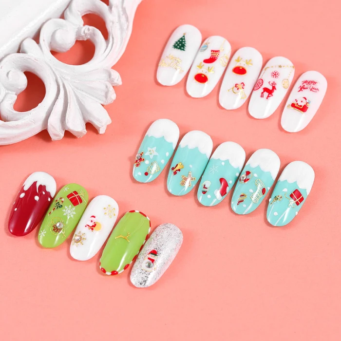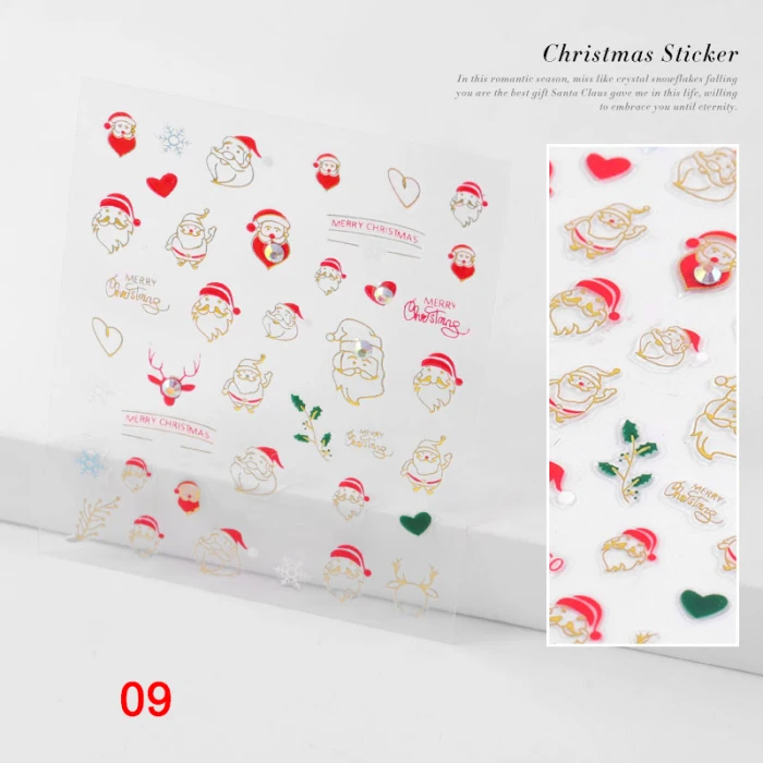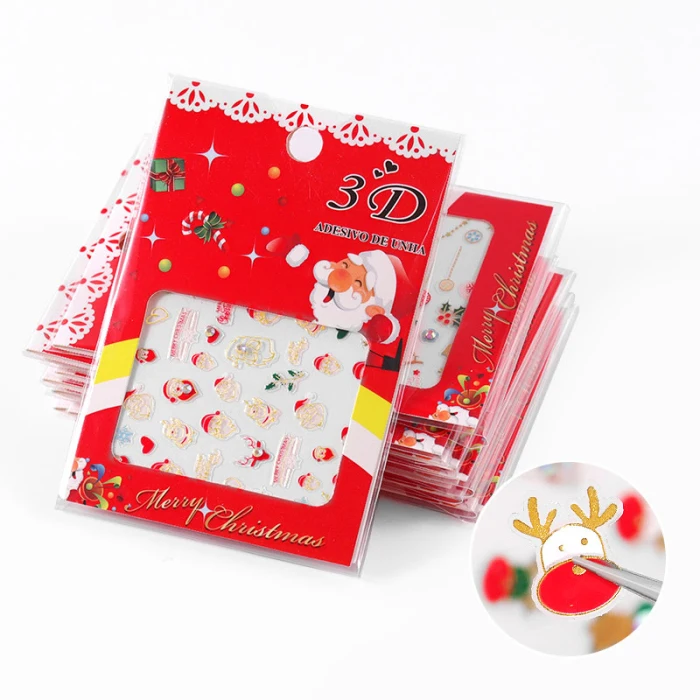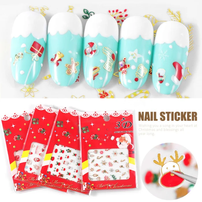 3D Рождественские наклейки для ногтей, наклейки для ногтей, клеящиеся слайдеры, инструмент для украшения маникюра, V9-Drop