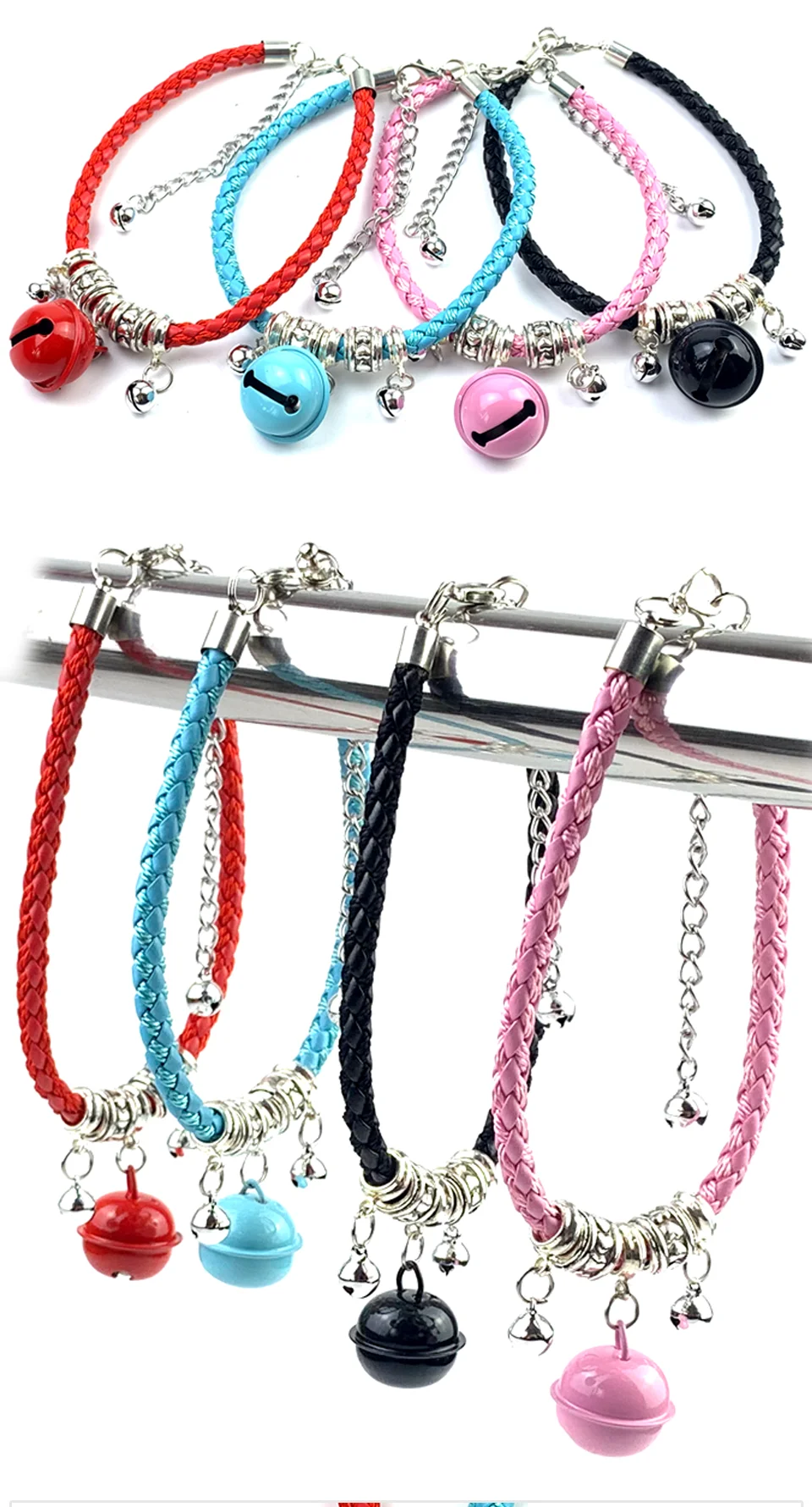 Кожаный ошейник ручной работы для питомца кота с колокольчиком регулируемый плетеный кожаный ошейник для питомца маленькая собачка ошейник для щенка котенка Колокольчик для кошки ошейник