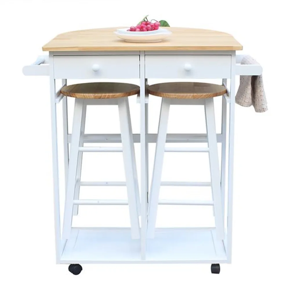 FCH полукруг из цельного дерева Складная обеденная тележка с 2 бесплатными табуретами белый