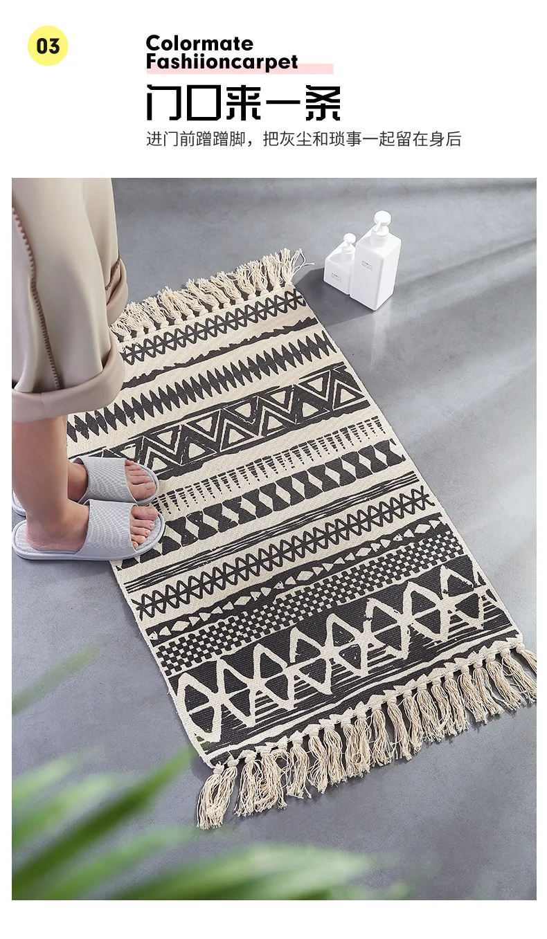 Название: Полосатый хлопковый ковер с мягкой Бахромой в богемном стиле Толщина: около 0,4 см Материал: из хлопка и льна Задняя часть ковра: дышащая, не повреждает деревянный пол. Подходит: гостиная, спальня, кабинет, детская комната, кабинет/столовая/отель/офис. Поскольку ограничение объема является очень строгим, его можно только сложить, складки ковра очень легко восстанавливаются, распределить его под журнальным столиком на некоторое время, ходить вокруг, и используйте тяжелые вещи. Или вы можете гладить его, чтобы быстро восстанавливать складки.