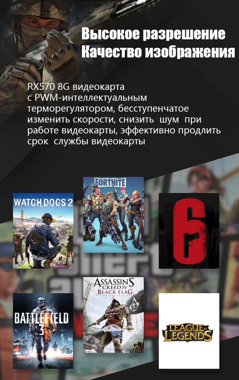 Видеокарта RX 570 DirectX 12 8 Гб 256 бит GDDR5 rx 570 PCI Express 3,0x16 DP HDMI DVI Ready для видеокарты AMD geforce games