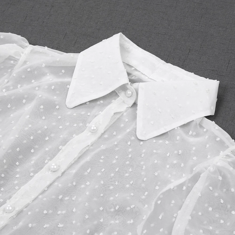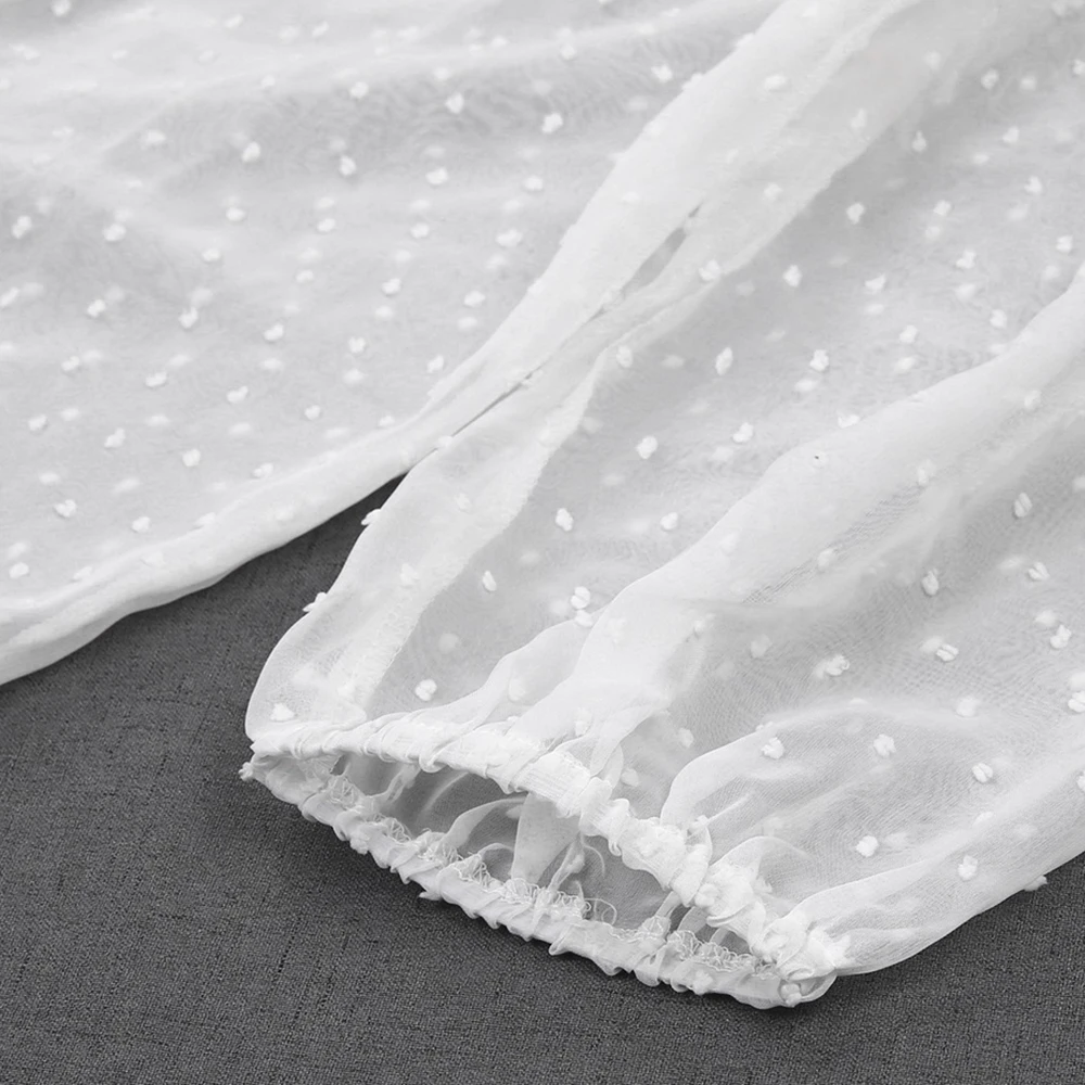 Женская сетчатая прозрачная шифоновая блузка с длинным рукавом, сексуальные топы в горошек с пышными рукавами, Женская Офисная рубашка, женская одежда