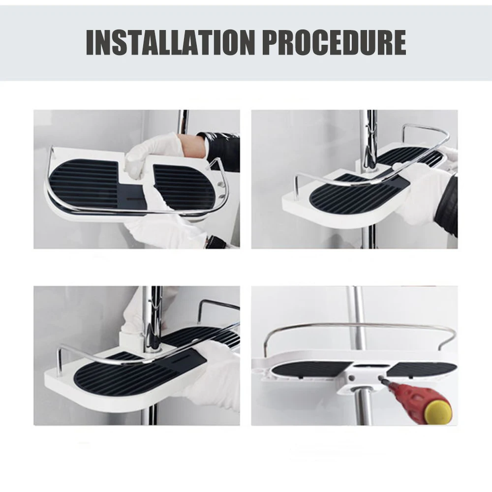 [Стабильная фиксированная]Полка для душа может быть надежно закреплена и не даст бутылкам упасть и повредить голову.