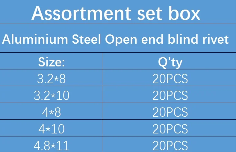 Aluimium стальная глухая заклепка. Набор коробок для выбора