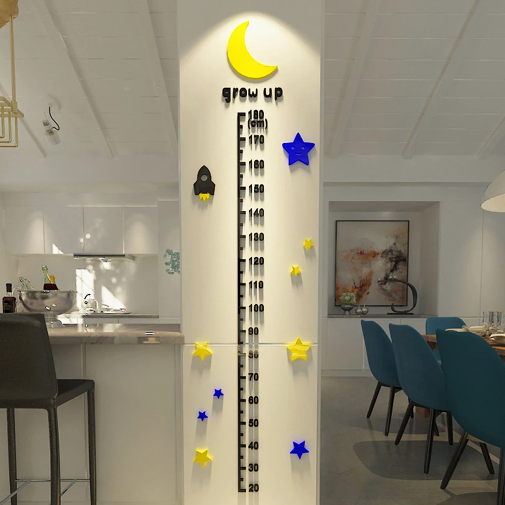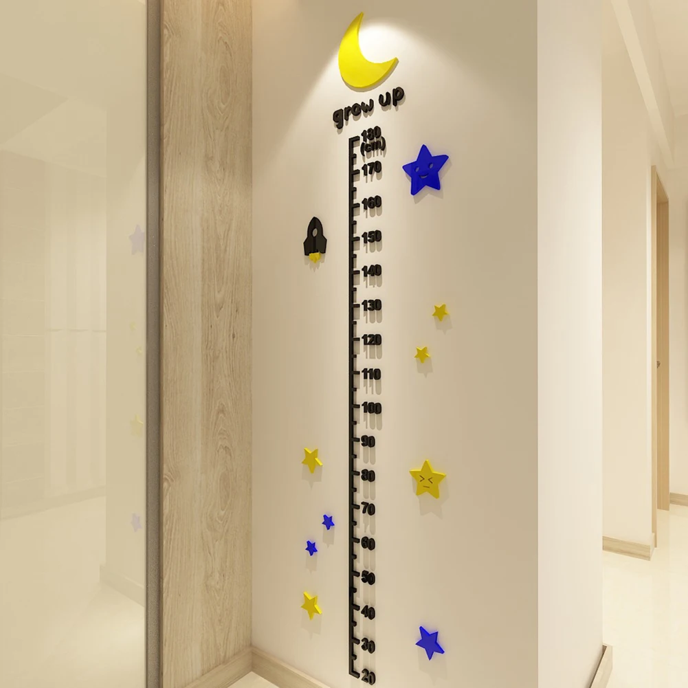Акриловый рисунок Луна Звезда ракета высота диаграмма настенные стикеры Детская комната Наклейка Декор