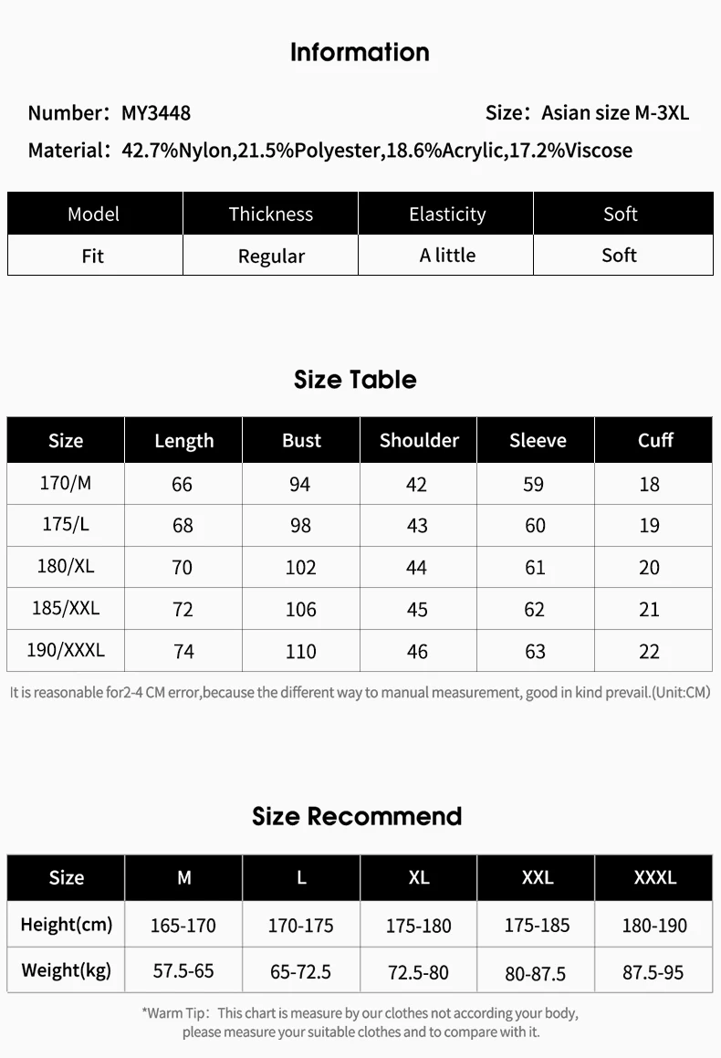 Product Type:Men Sweater Material:42.7%Nylon,21.5%Polyester18.6%Acrylic,17.2%Viscose Color:Gray Size:M,L,,XL,XXL,XXXL IN Asian size Washing:Suitable for machine washing or hand washing Feature:Simple,High quality,Quick-dry, Comfortable,Fabric soft, Breathable, Not easily deformed. Quality control:All the products will be checked by our professional QC before packing