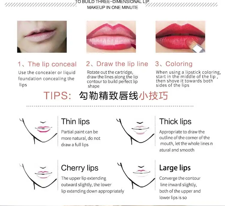 Мягкая кисть, может уменьшить или увеличить губу, модифицированный темный цвет губ, форма тонкой губы