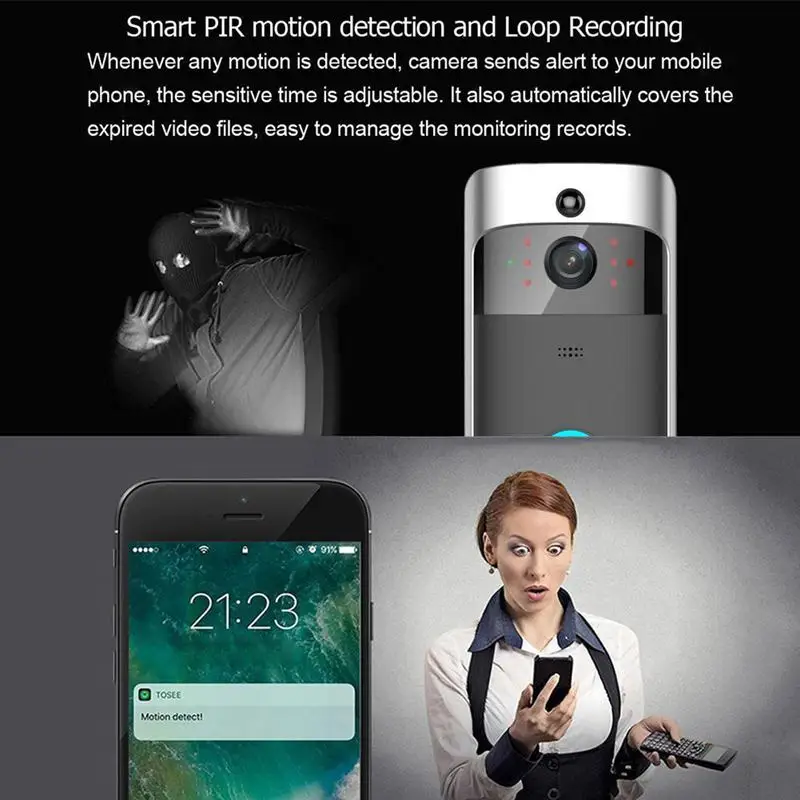 1 умный беспроводной WiFi Визуальный дверной звонок (не включая батареи)