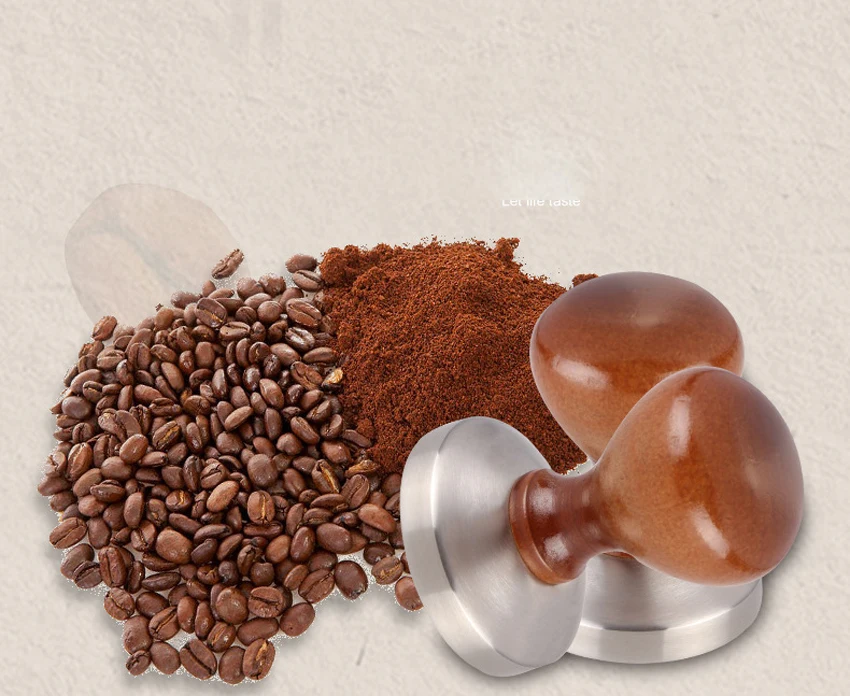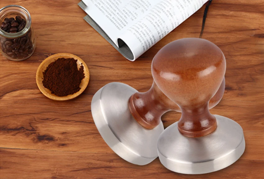 3. Эргономичная ручка:Благодаря особенно Прочной Деревянной ручке премиум-класса и динамичному дизайну, трамбовочный светильник лежит в руке-для приготовления лучшего кофе.