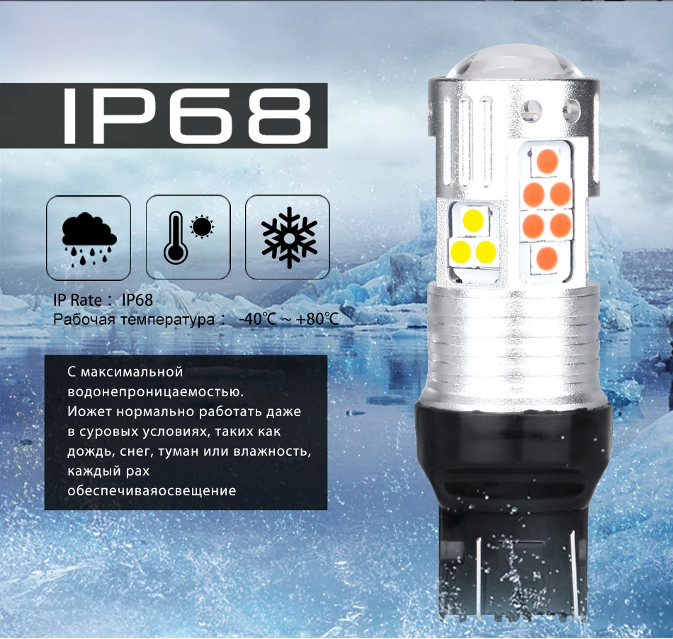 Описание продукта: -Энергосберегающая лампа -Лампа высокой яркости -Водонепроницаемый Технические характеристики: -Цвета: двойной цвет, белый, желтый -Разъем: 7440 W21W, 7443 W21/5 W, 3156,3157 -Номинальное рабочее напряжение: 12-24 В -Срок службы лампы: 50000 часов -Функция: задний фонарь, стоп-сигнал, указатель поворота, задний фонарь Пакет включает в себя: 1 х Светодиодные автомобильные лампы