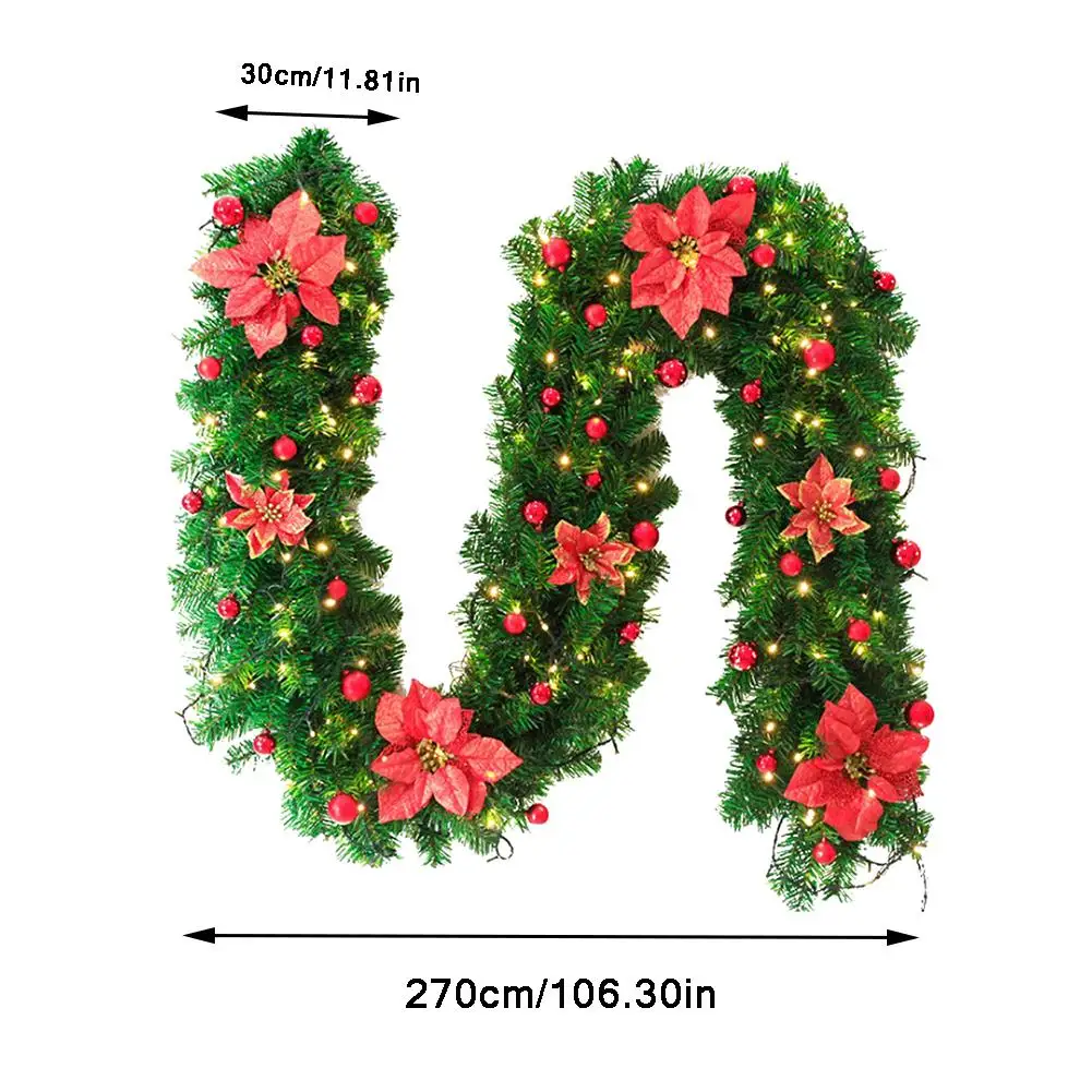270 см Рождественская Еловая гирлянда, искусственный Рождественский ротанг с цветами Рождественское украшение снаружи