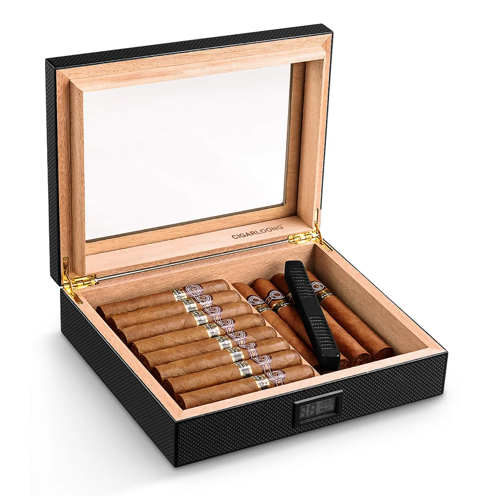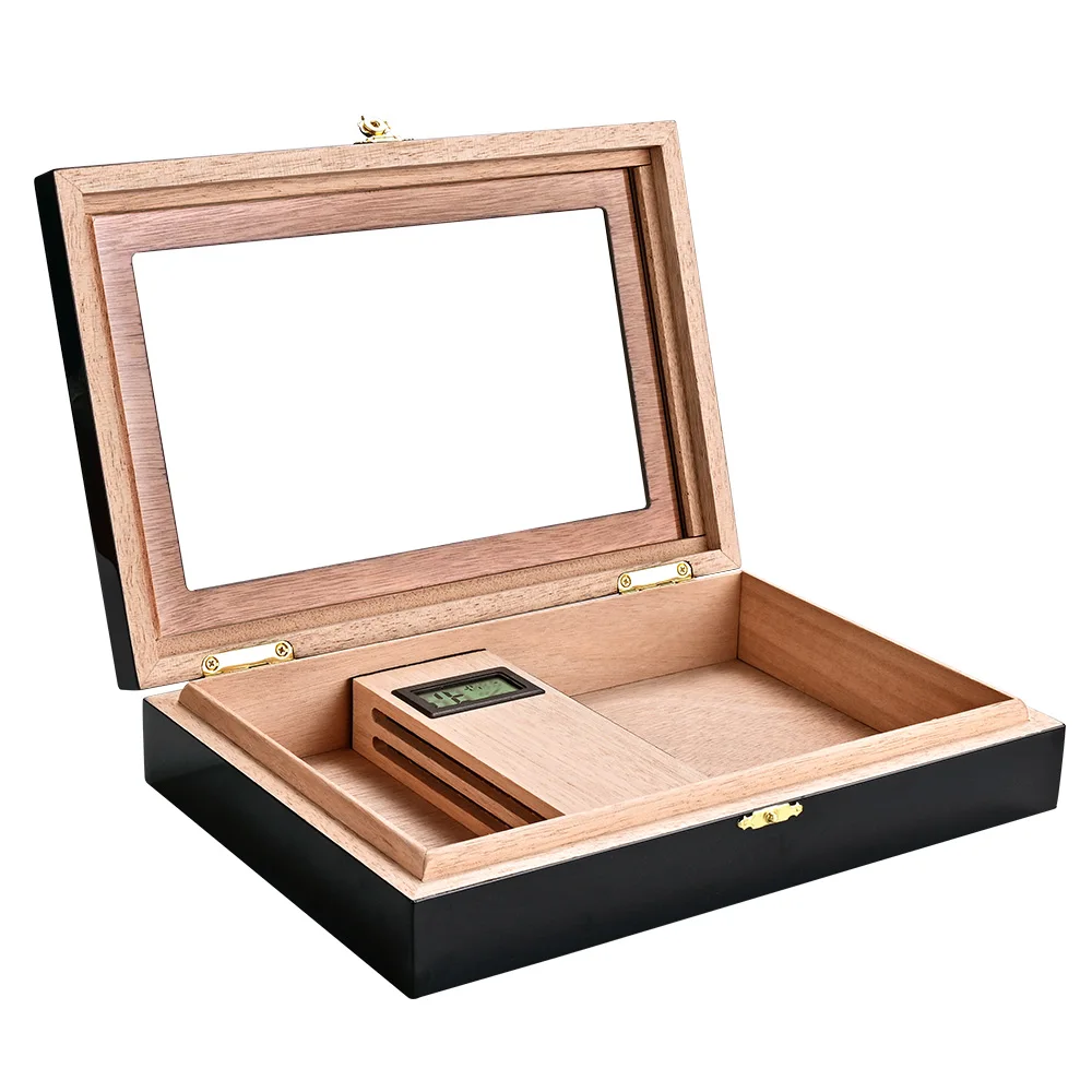 Хьюмидор для сигар из кедрового дерева со увлажнитель с гигрометром прозрачным люком, портативный чехол для сигар