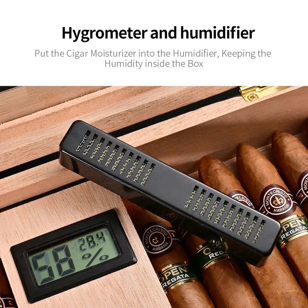 Классический хьюмидор включает в себя гигрометр и увлажнитель.