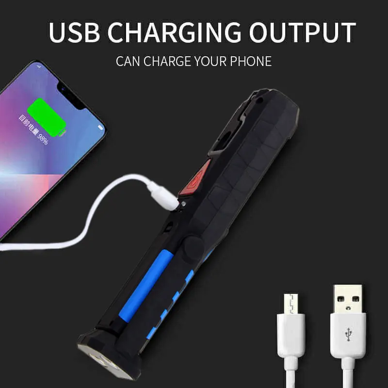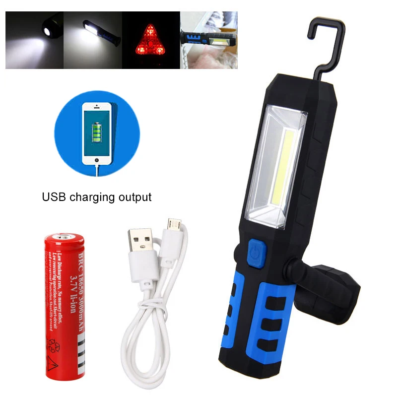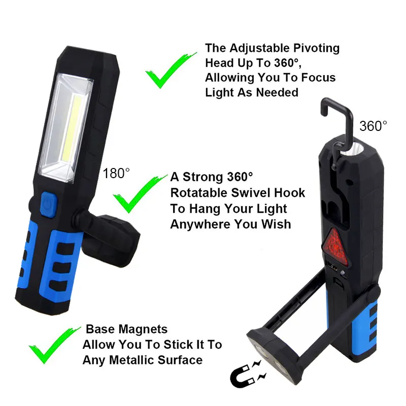 -COB + светодиодный светильник для проверки работы: супер яркий белый COB светильник в корпусе, чтобы иметь светильник вокруг, дополнительный 1 Вт Светодиодный светильник, размещающийся на верхнем конце, делает его ручной фонарь для вас в то же время