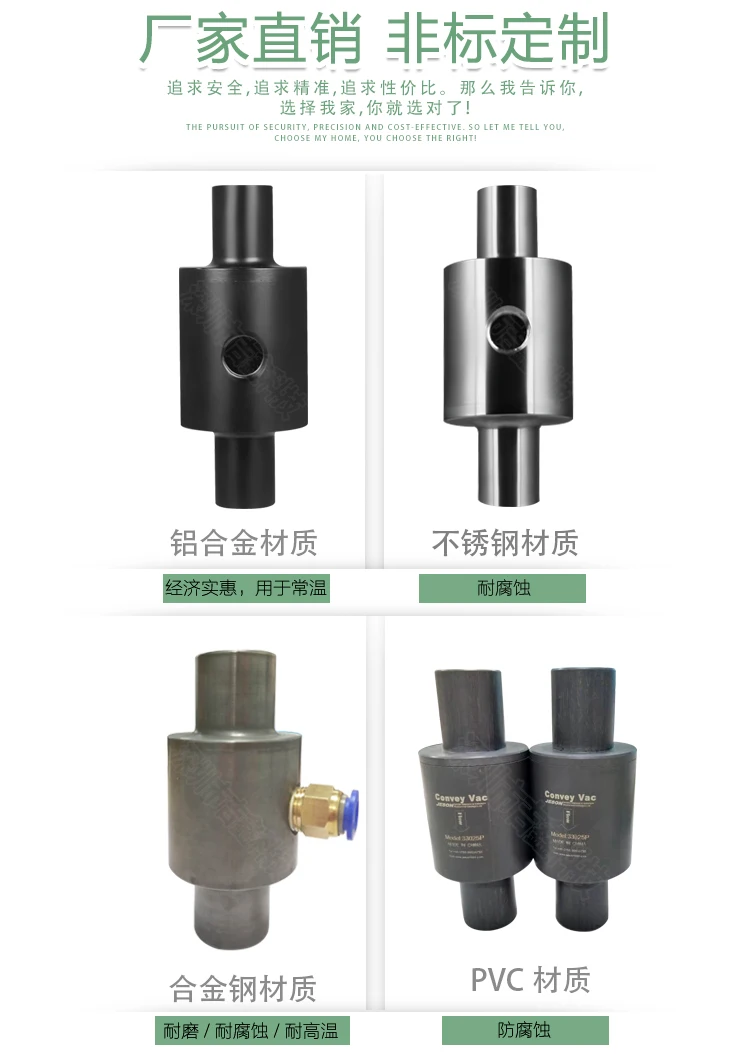 Принцип работы воздушного вертикального конвейера: когда сжатый воздух входит в кольцевую камеру высокого давления пневматического конвейера, через внутреннюю физическую структуру в сторону высокоскоростной струи, этот высокоскоростной воздушный поток создает высокую площадь отрицательного давления на входе (вакуум), поэтому материал на Вход всасывается воздушным потоком высокого давления, переместите в правый конец сжатым воздухом и введите в указанное место. таким образом, воздушный транспорт, остановка запуска и скорость транспортировки достигаются путем регулировки переключателя и потока сжатого воздуха., очень легко Управление 。
