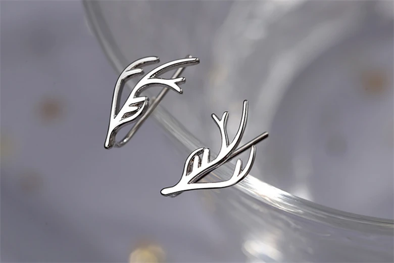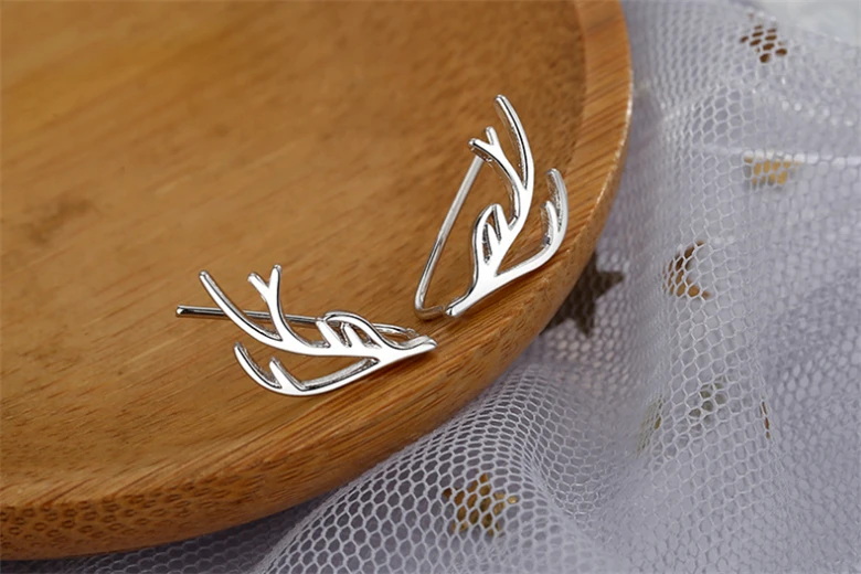 Christmas Gift Animal Deer Buck Horn Women Fashion Earrings 2019 925 Real Pure Silver Mini Small Stud Earrings Promotion Cheap