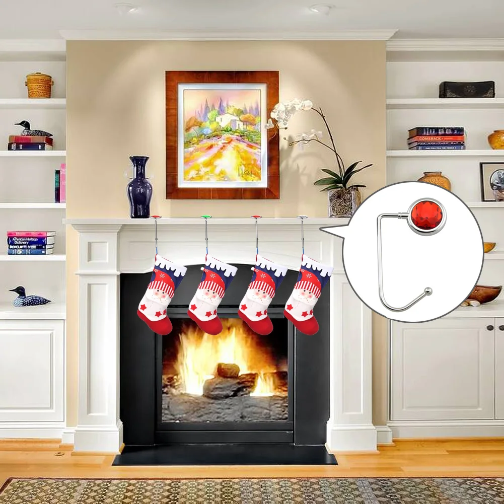 -Эти крючки поворотного дизайна, вы можете настроить его, чтобы соответствовать поверхности камина или стола устойчиво, затем повесить ваш Рождественский чулок, подарки, мешки или любые другие вещи на крючок. Также просто хранить.