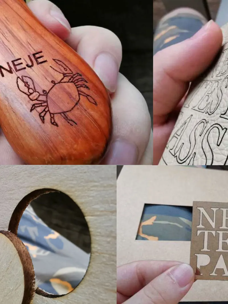 Предметы могут быть Резы, в том числе оксид алюминия, медь, красное дерево, бамбук, бумажные карточки, слоновая кость, кожа, горючий пластик, PCBA и т. д.