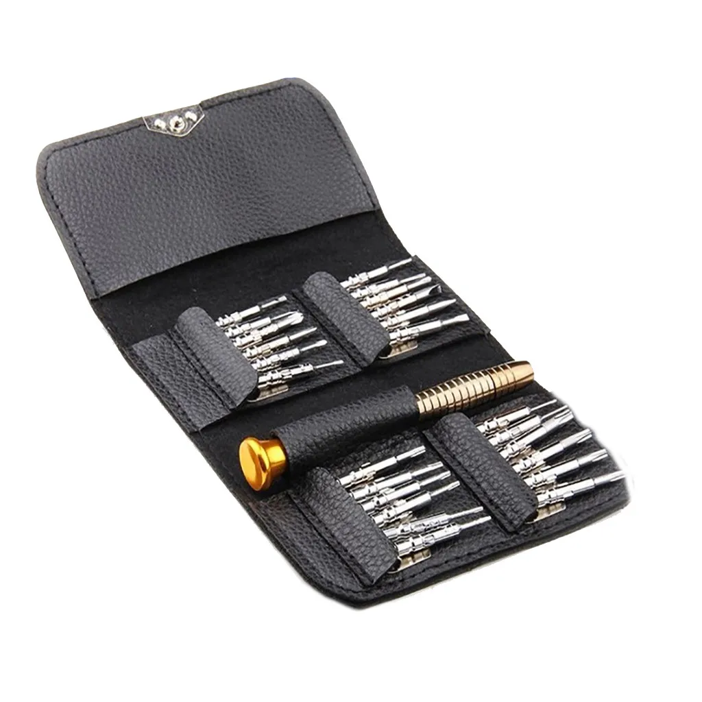 Эта точность 25 шт. Высококачественный набор-идеальный набор инструментов для электронных мастерских, часов Ремонт, ремонт очков и хобби миниатюрные, где хорошая точность Требуется. Кошелек вмещает все отвертки, портативный и не легко Падение. Храните его в кухонном ящике, бардачке или упаковке Багаж, когда вы путешествуете, вам понравится!