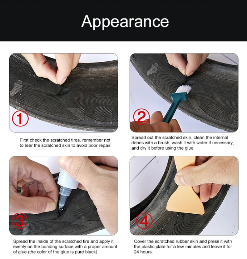 М²Быстрый ремонт и отверждение -- он хорошо работает в любых типах шин с сильной адгезией, перетянутыми или бескамерными.