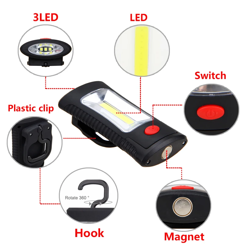 COB светодиодный и 3 шт. светодиодный магнитный рабочий светильник со складным крюком и опорной подставкой